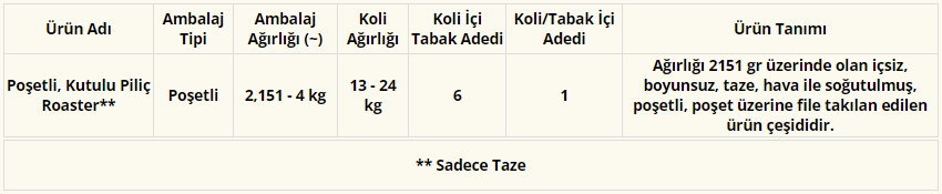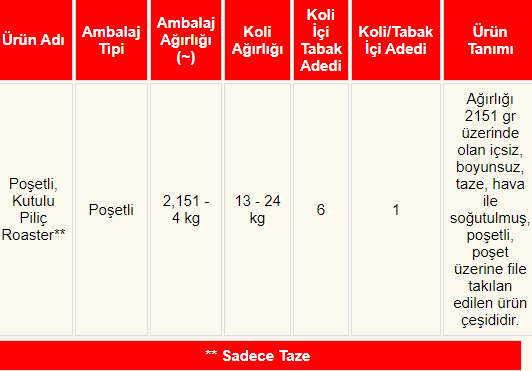 Poşetli, Kutulu Piliç Roaster
