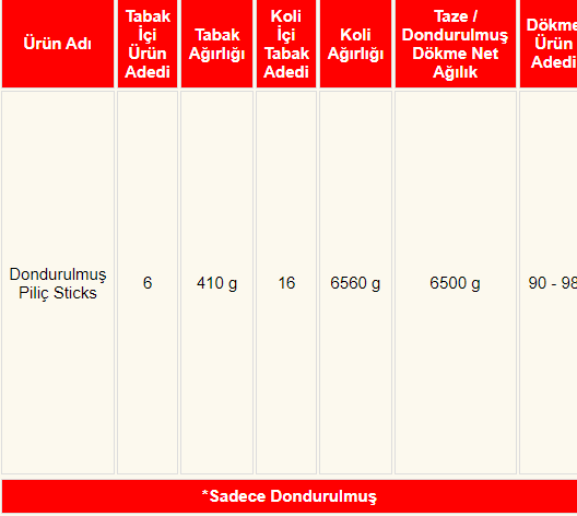Dondurulmuş Piliç Sticks